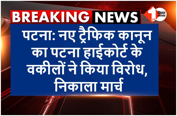 PATNA: केंद्र सरकार के नए ट्रैफिक नियम में जुर्माने की राशि में बढ़ोतरी और पुलिस की तरफ से कानून का दुरुपयोग किए जाने के मामले में पटना हाईकोर्ट के वकीलों ने गुरुवार को विरोध मार्च नि