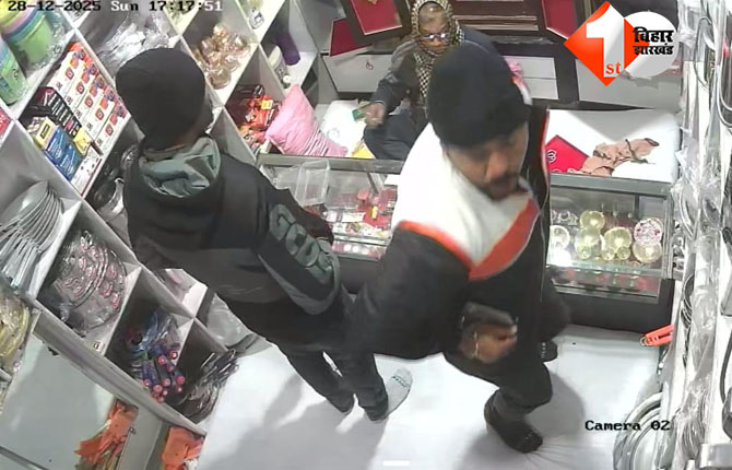 MUZAFFARPUR: मुजफ्फरपुर जिले के अहियापुर थाना क्षेत्र में इन दिनों अपराधियों के हौसले बुलंद हैं। ताजा मामला अहियापुर इलाके का है, जहाँ दिनदहाड़े दो शातिर बदमाशों ने एक ज्वेलरी दुकान को अपना निशाना बनाया। ग्राहक बनकर आए इन बदमाशों ने बड़ी ही चालाकी से लाखों रुपये मूल्य के सोने के जेवरों पर हाथ साफ कर दिया और मौके से चंपत हो गए। पूरी वारदात दुकान में लगे सीसीटीवी कैमरे में कैद हो गई है।