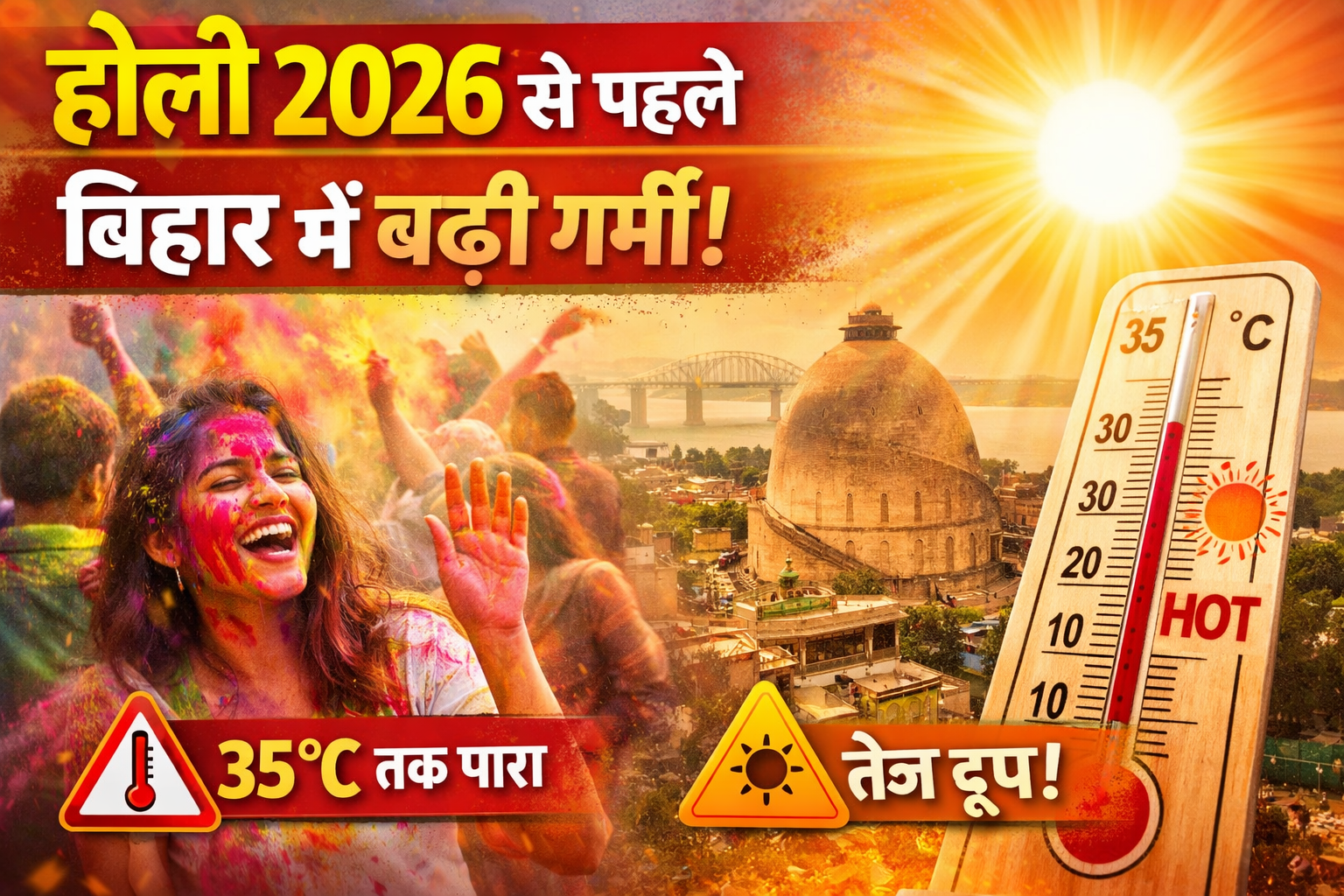 गया, भागलपुर और मुजफ्फरपुर जैसे जिलों में अभी से दोपहर के समय गर्मी बढ़ने लगी है। इन इलाकों में होली के दिन तापमान और ऊपर जा सकता है, जिससे रंग खेलने के दौरान पसीना और थकान ज्यादा महसूस हो सकती है।