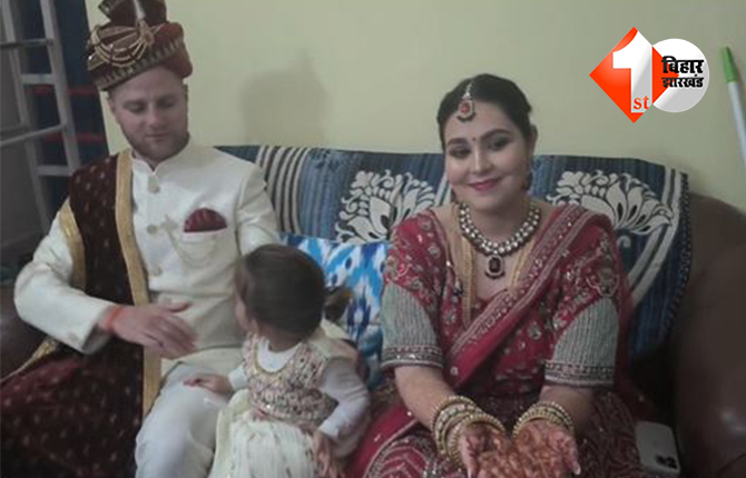 BIHAR NEWS: बिहार के पटना जिले के बाढ़ अनुमंडल अंतर्गत अथमलगोला प्रखंड के रूपस गांव में उस समय उत्सव जैसा माहौल बन गया, जब विदेश में बस चुकी बेटी मिशेल ने अपने जीवनसाथी बैलेस्टिक के साथ हिंदू रीति-रिवाज से विवाह रचाया। हाथों में गहरी रची मेहंदी, पैरों में सजी महावर और परंपारिक वेशभूषा में सजी मिशेल बेहद खुश नजर आ रही थी। वहीं दूल्हे बैलेस्टिक भी भारतीय परंपराओं के रंग में पूरी तरह रंगे दिखे।