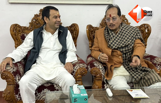 PATNA: राजद सुप्रीमो लालू प्रसाद यादव के बड़े लाल तेज प्रताप यादव दही चूड़ा भोज का न्योता देने लिए बिहार के डिप्टी सीएम विजय कुमार सिन्हा के घर पहुंचे। इस दौरान तेज प्रताप यादव ने राजस्व एवं भूमि सुधार मंत्री विजय कुमार सिन्हा से पर्सनल मोबाइल नंबर मांगा। तो उन्होंने अपना मोबाइल नंबर तेज प्रताप को दिया।
