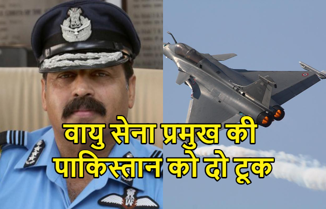 DESK: भारतीय वायुसेना प्रमुख राकेश कुमार सिंह भदौरिया ने पाकिस्तान को सख्त चेतावनी दी है. पाकिस्तान को चेतावनी देते हुए वायुसेना प्रमुख ने कहा कि अगर पाकिस्तान देश में किसी भी तरह के आतंकी हमले को अंजाम देता है तो एक बार फिर से बालाकोट जैसी एयर स्ट्राईक से इनकार नहीं किया जा सकता है.