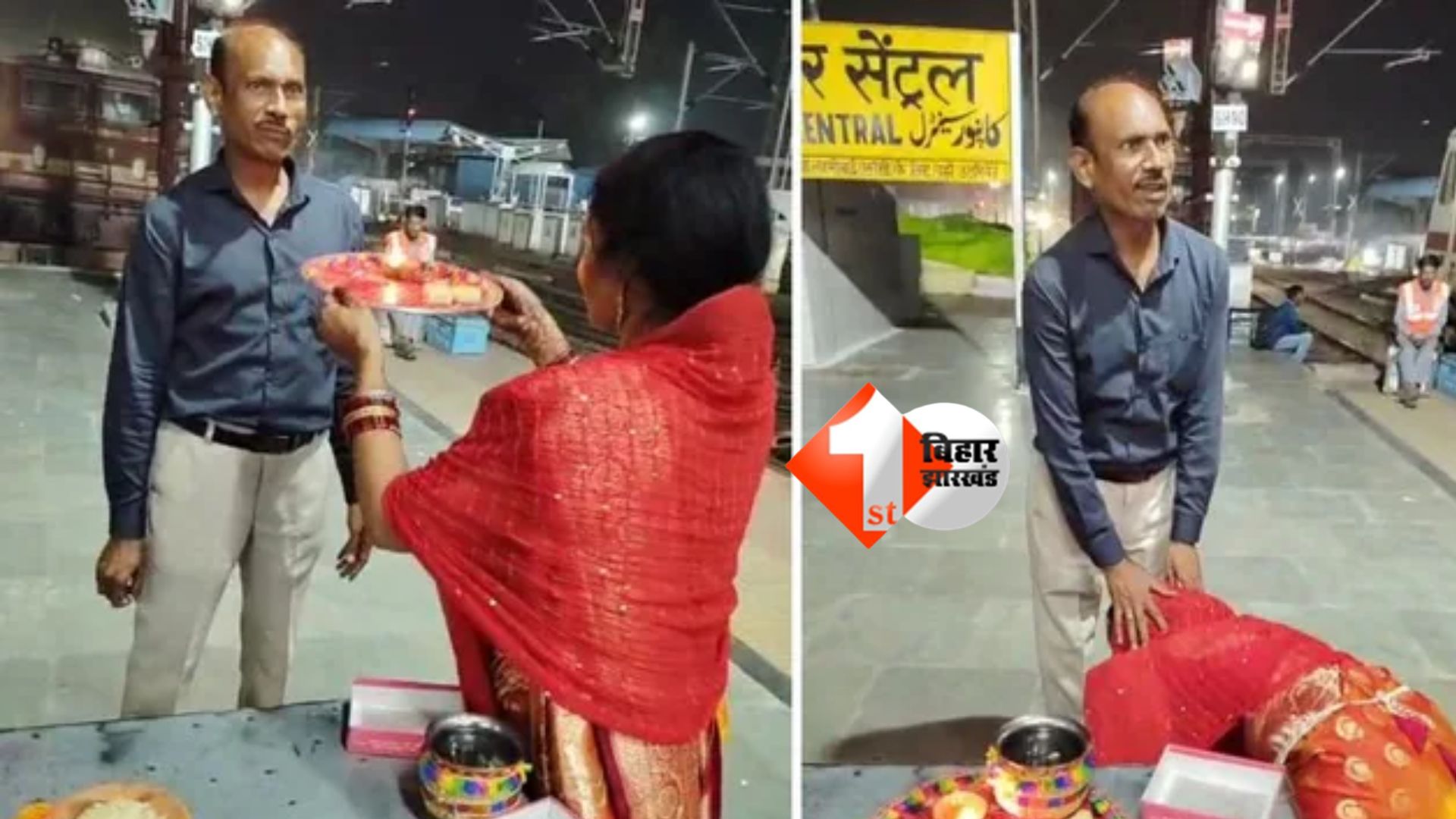 Railway Employee Festival: उत्तर प्रदेश में कानपुर सेंट्रल रेलवे स्टेशन पर करवा चौथ की रात एक अनोखा नजारा देखने को मिला। लोको पायलट महेश कुमार को करवा चौथ पर छुट्टी नहीं मिली थी। इस दौरान उनकी पत्नी माया कुरील प्लेटफार्म पर पहुंची और वहीं अपने पति के साथ व्रत मनाया। महिला ने पूजा की थाली लेकर चलनी से महेश कुमार का चेहरा देखा और पति के पांव छूकर आशीर्वाद लिया। इसके बाद पति ने पत्नी को पानी पिलाकर व्रत पूरा कराया। इस दौरान प्लेटफार्म पर गुजरती ट्रेनों और अनाउंसमेंट की आवाजों के बीच यह दृश्य किसी ने वीडियो में कैद कर लिया, जो सोशल मीडिया पर वायरल हो गया।