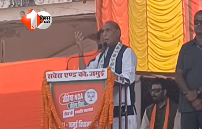 Bihar Election 2025: रक्षा मंत्री राजनाथ सिंह ने बुधवार को बिहार के जमुई में जनसभा को संबोधित करते हुए दावा किया कि बिहार विधानसभा चुनाव में एनडीए तीन-चौथाई सीटों पर जीत दर्ज कर एक बार फिर राज्य में सरकार बनाएगी। यह बयान उन्होंने भाजपा उम्मीदवार श्रेयसी सिंह के समर्थन में श्रीकृष्ण सिंह मेमोरियल स्टेडियम में दिया।